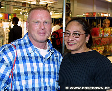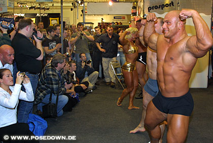 der Bodybuilding-Szene bereitwillig Autogramme für ihre